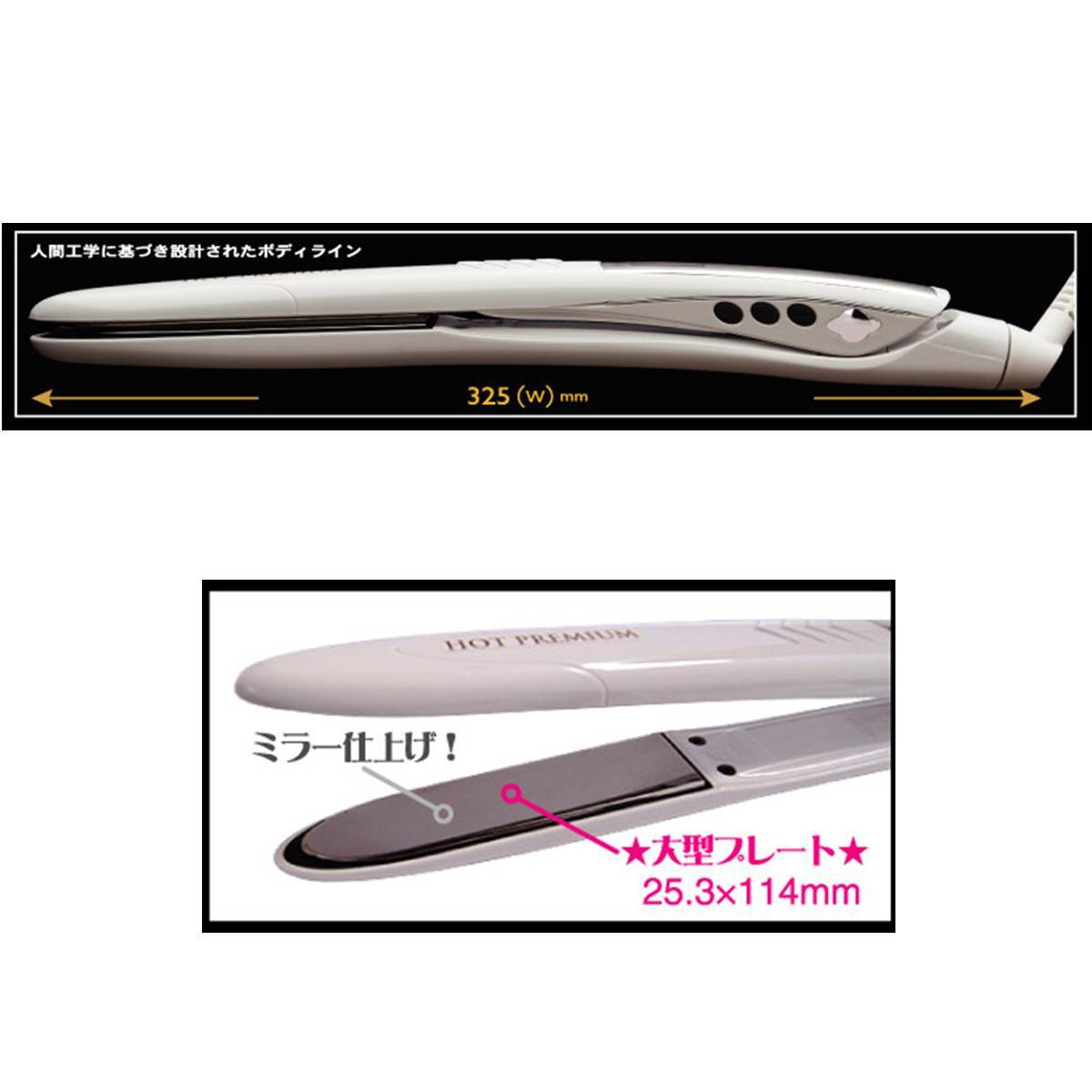 商品名:ホットプレミアムアイロンプロ PBHP-500 《チタンプレートストレートアイロン》ホワイト
