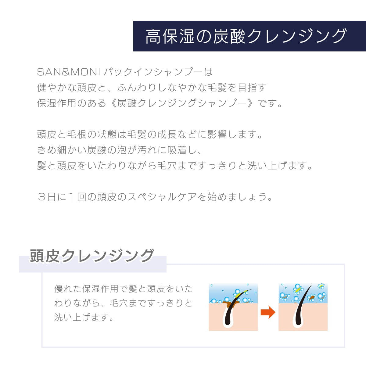 もっちりとした炭酸泡が余分な皮脂や汚れを包み込んで落とし、健康な髪を育みます