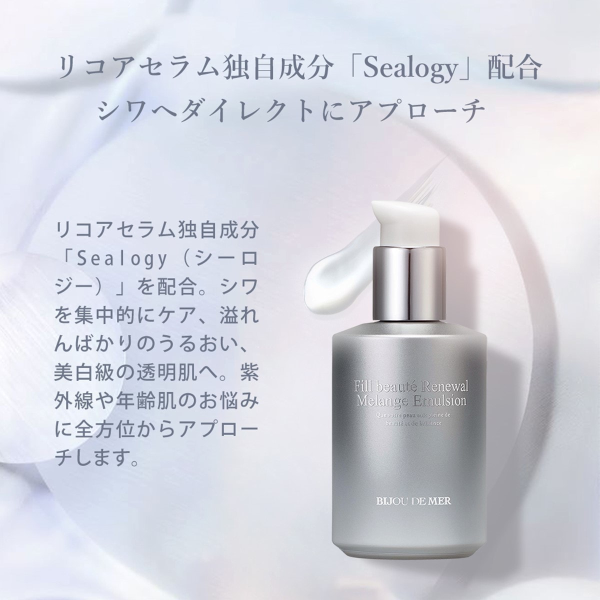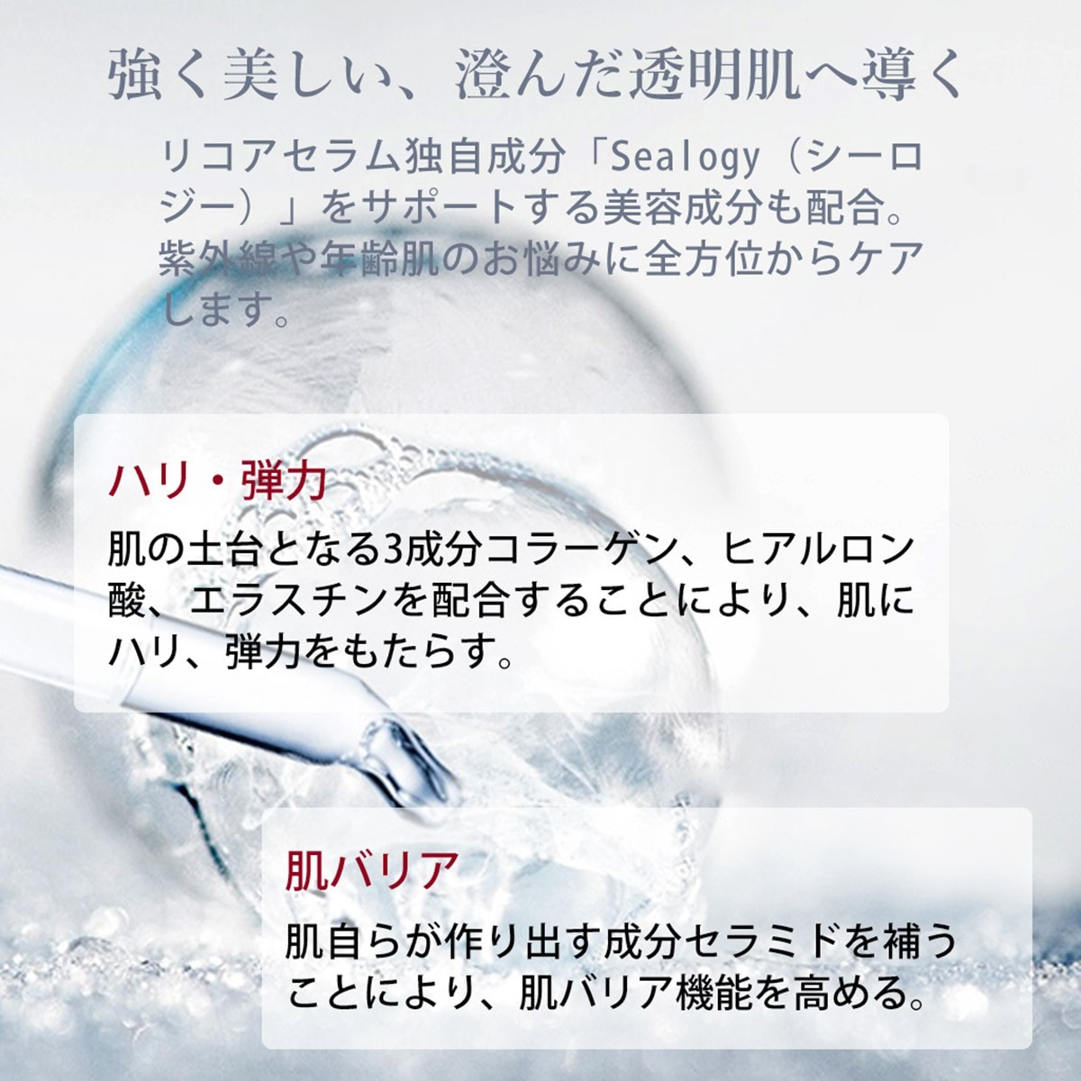 美容成分「Sealogy(シーロジー)」が肌に豊潤なうるおいを与え、イキイキとしたハリ&ツヤに満ちた眩いばかりの肌へ導くエイジングケア※美容液。